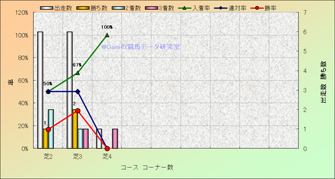 コース、コーナー数別成績(平地) |