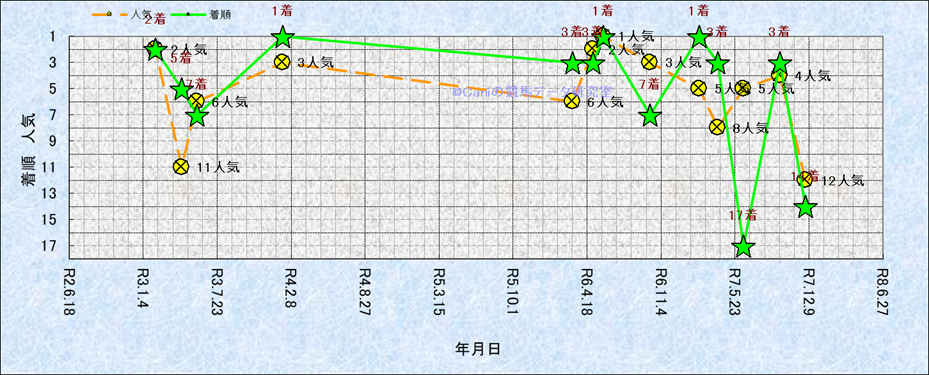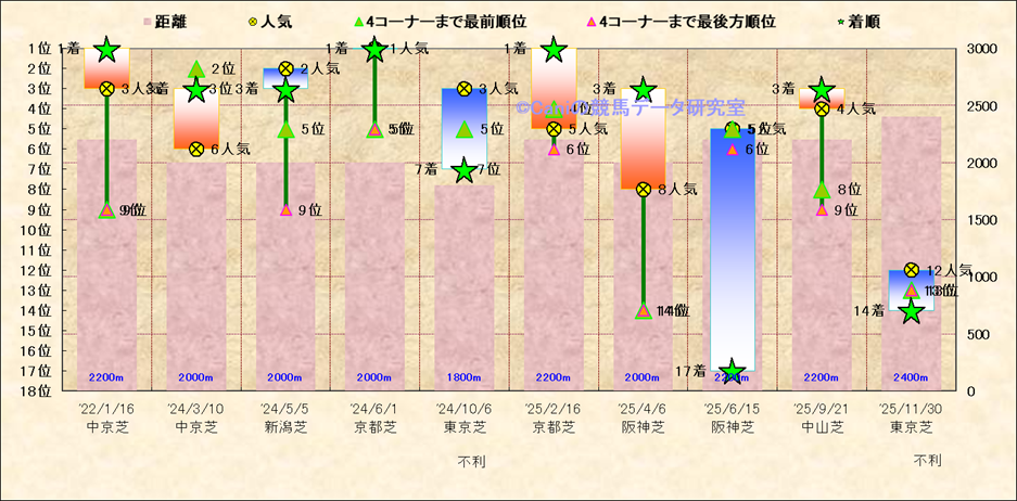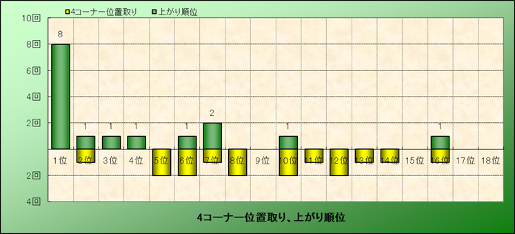 脚質解析 近20レースの4コーナーでの位置取りと上がり順位(頭数補正後) |