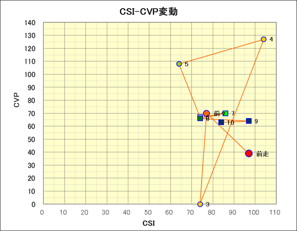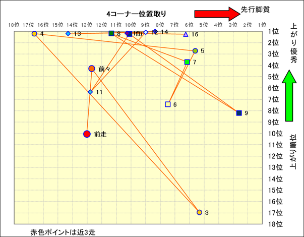 近走における4コーナーでの位置取りと上がり順位(頭数補正後) |
