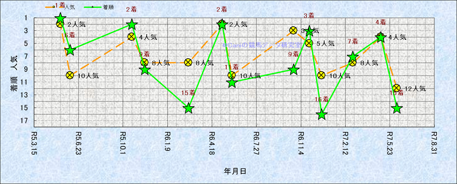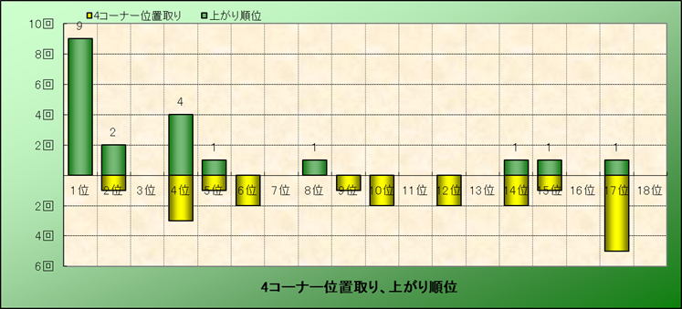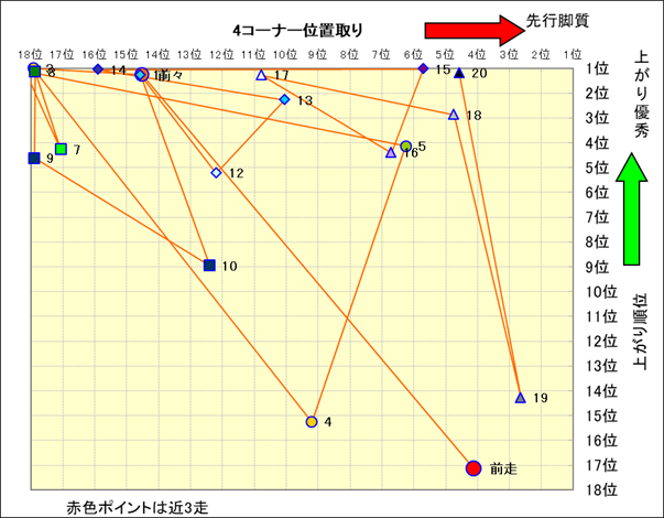 脚質解析 近20レースの4コーナーでの位置取りと上がり順位(頭数補正後) |