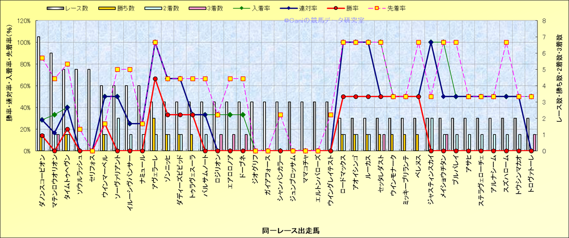 ライバル(相性)解析 同一レースに下記馬が出走した場合の成績とその馬に先着する先着率 |