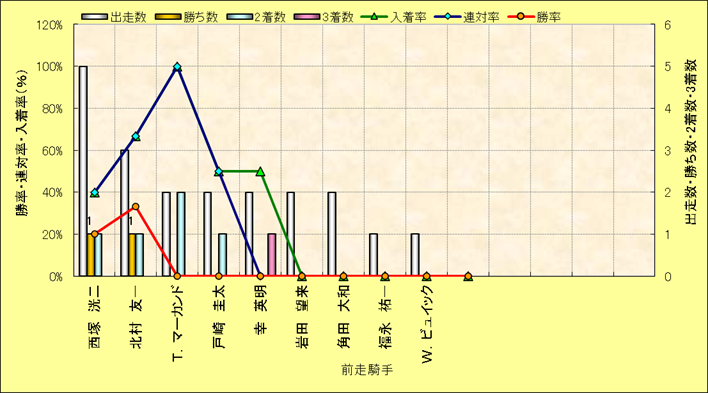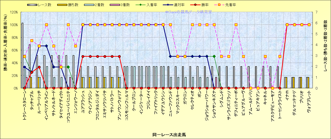 ライバル(相性)解析 同一レースに下記馬が出走した場合の成績とその馬に先着する先着率 |