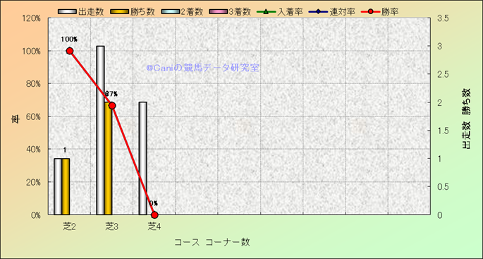 コース、コーナー数別成績(平地) |