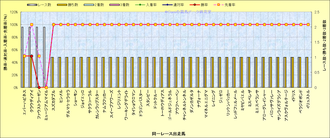 ライバル(相性)解析 同一レースに下記馬が出走した場合の成績とその馬に先着する先着率 |