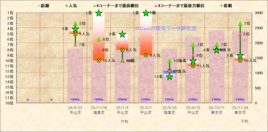 近10走 人気−着順-位置取りの推移 |