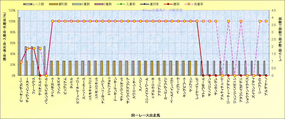 ライバル(相性)解析 同一レースに下記馬が出走した場合の成績とその馬に先着する先着率 |