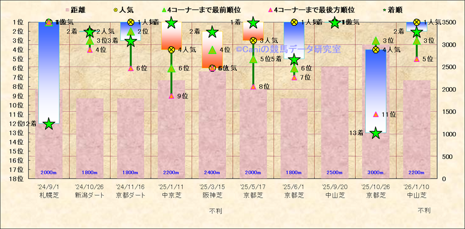近10走 人気−着順-位置取りの推移 |