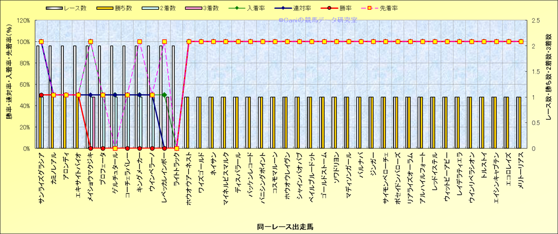 ライバル(相性)解析 同一レースに下記馬が出走した場合の成績とその馬に先着する先着率 |