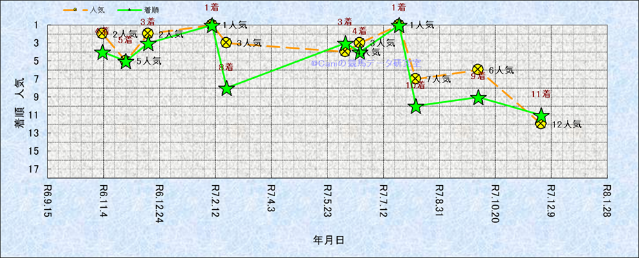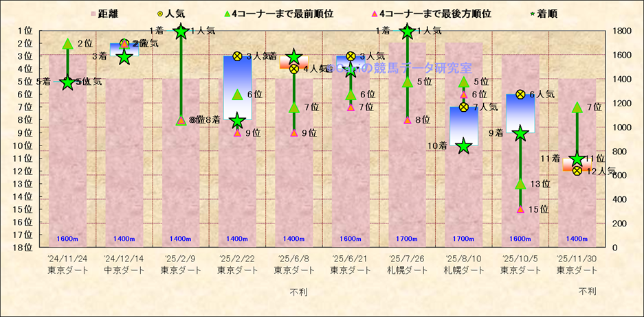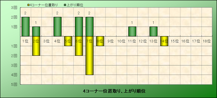 脚質解析 近20レースの4コーナーでの位置取りと上がり順位(頭数補正後) |