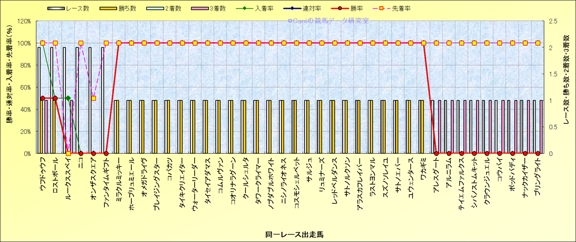 ライバル(相性)解析 同一レースに下記馬が出走した場合の成績とその馬に先着する先着率 |