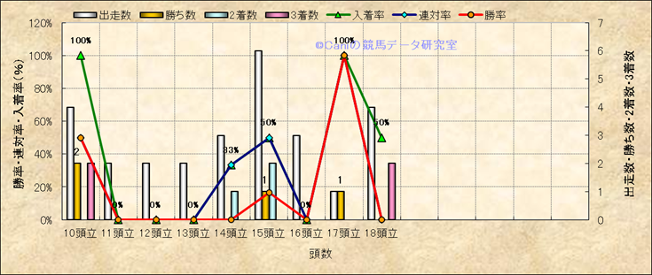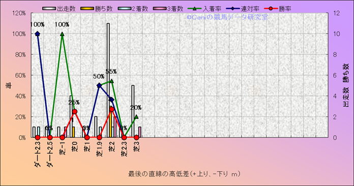 コース、最後の直線の高低差別成績(平地) |
