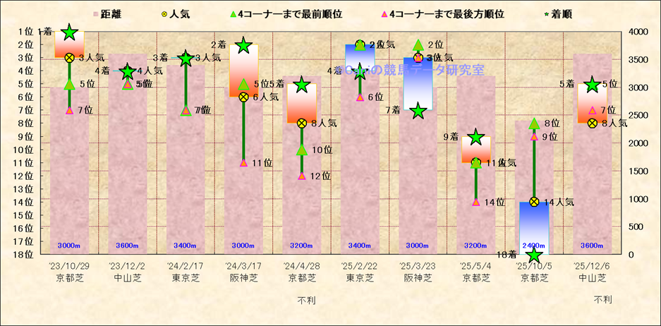 近10走 人気−着順-位置取りの推移 |