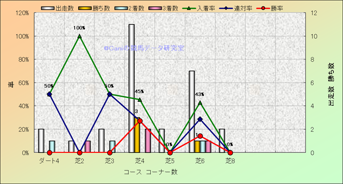 コース、コーナー数別成績(平地) |