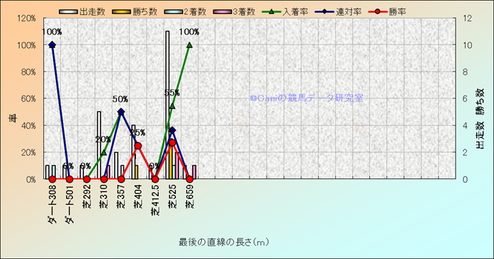 コース、最後の直線の長さ別成績(平地) |