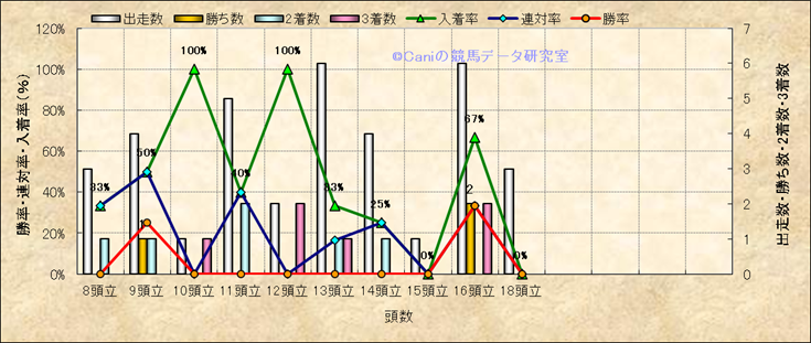 コース、最後の直線の高低差別成績(平地) |