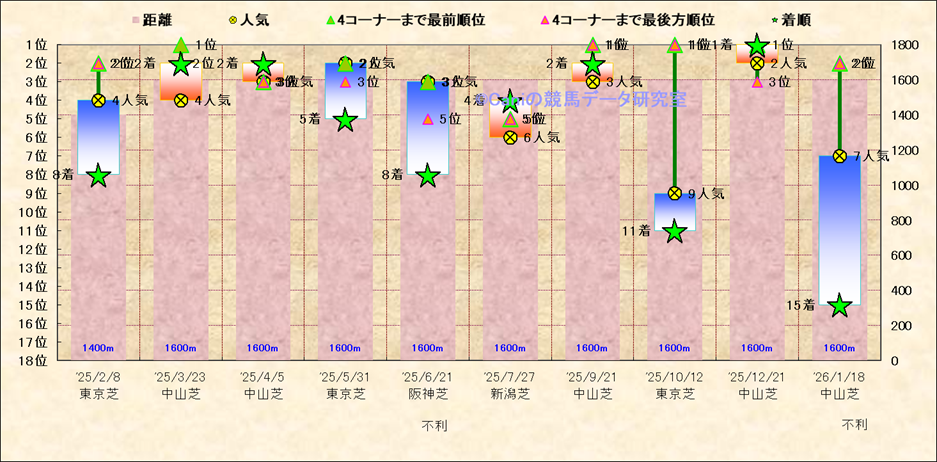 近10走 人気−着順-位置取りの推移 |