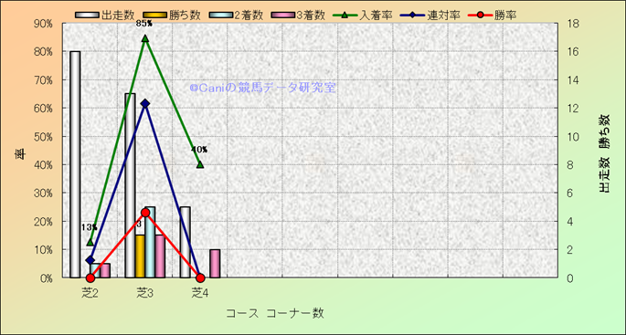 コース、コーナー数別成績(平地) |