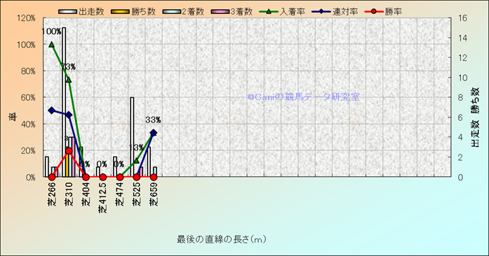 コース、最後の直線の長さ別成績(平地) |