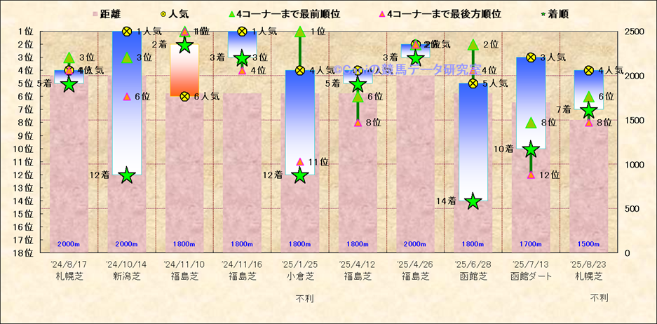 近10走 人気−着順-位置取りの推移 |