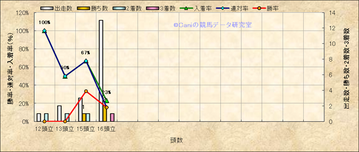 コース、最後の直線の高低差別成績(平地) |