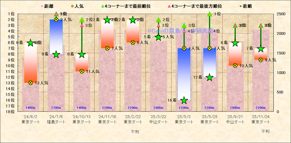 近10走 人気−着順-位置取りの推移 |