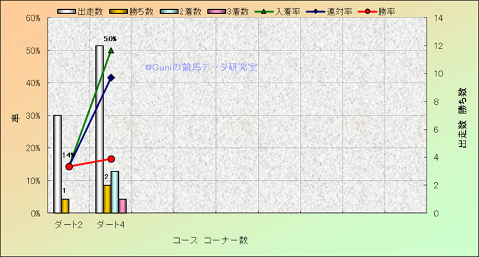 コース、コーナー数別成績(平地) |