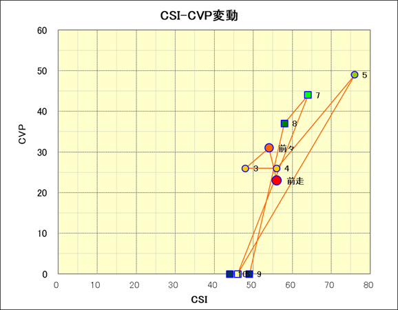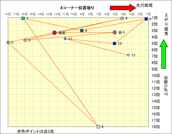 近走における4コーナーでの位置取りと上がり順位(頭数補正後) |