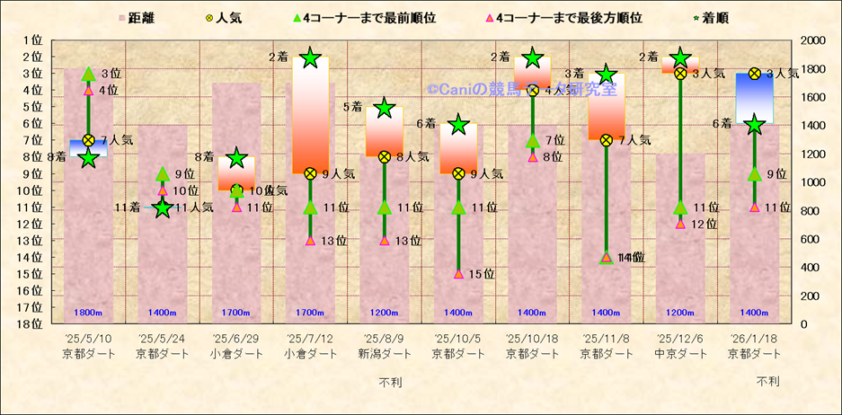 近10走 人気−着順-位置取りの推移 |