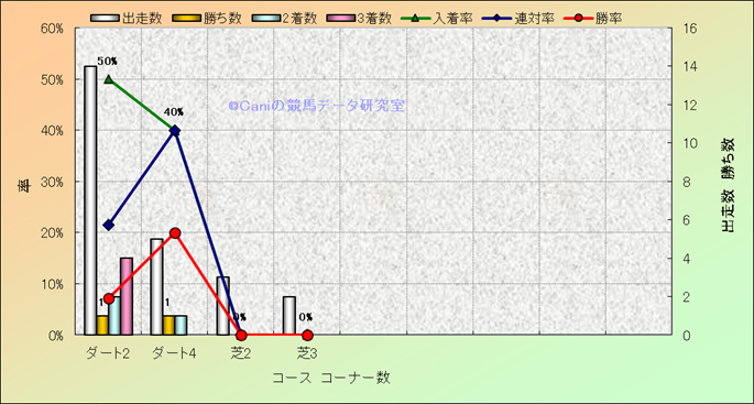 コース、コーナー数別成績(平地) |