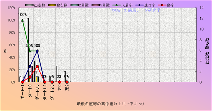 コース、最後の直線の高低差別成績(平地) |
