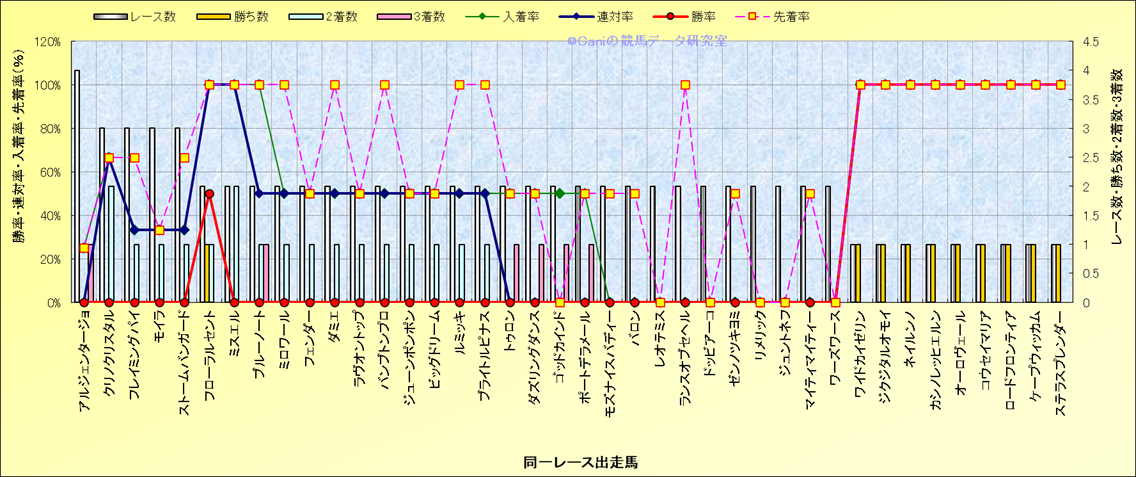 ライバル(相性)解析 同一レースに下記馬が出走した場合の成績とその馬に先着する先着率 |