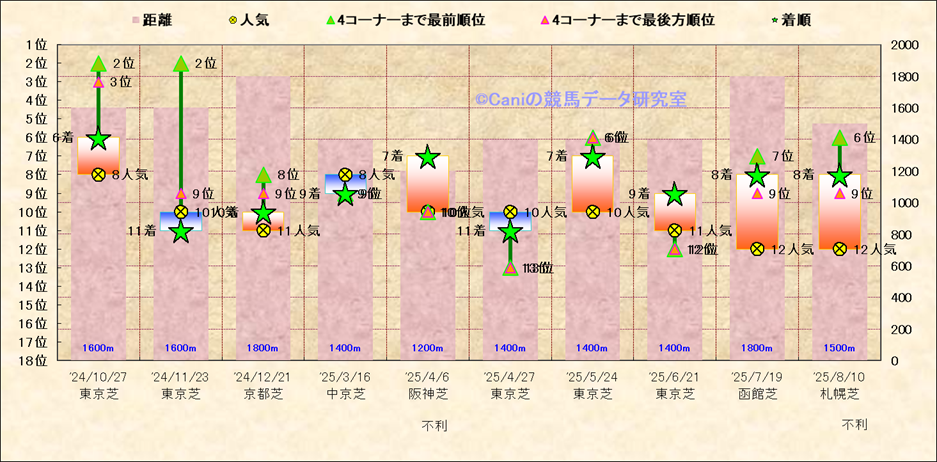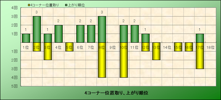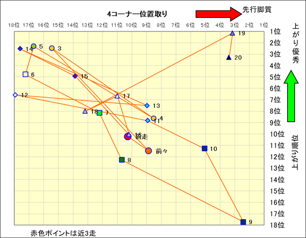 脚質解析 近20レースの4コーナーでの位置取りと上がり順位(頭数補正後) |