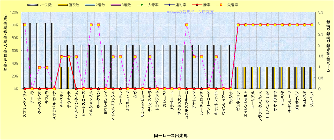 ライバル(相性)解析 同一レースに下記馬が出走した場合の成績とその馬に先着する先着率 |