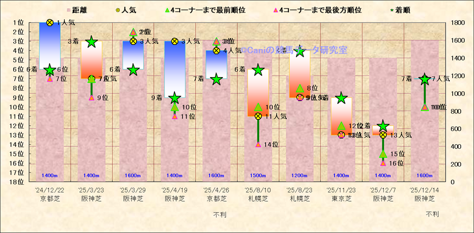 近10走 人気−着順-位置取りの推移 |