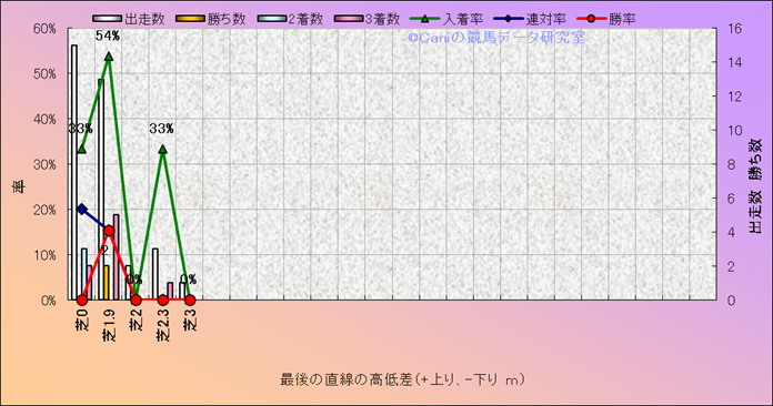 コース、最後の直線の高低差別成績(平地) |