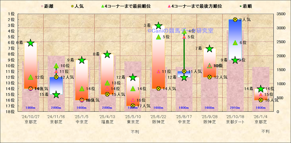 近10走 人気−着順-位置取りの推移 |