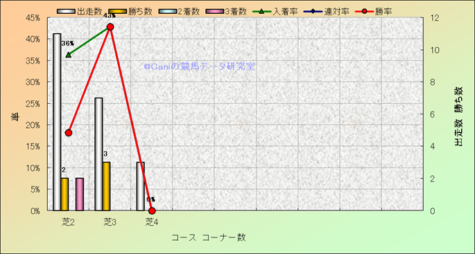 コース、コーナー数別成績(平地) |