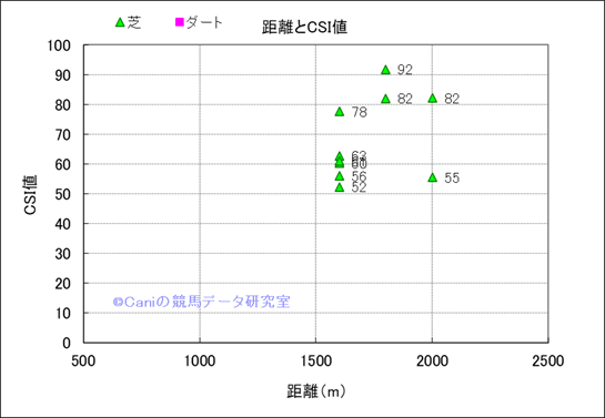コース、最後の直線の長さ別成績(平地) |