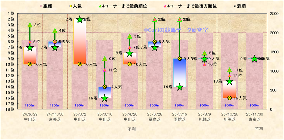 近10走 人気−着順-位置取りの推移 |
