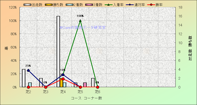 コース、コーナー数別成績(平地) |