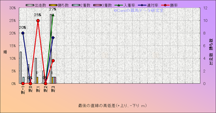 コース、最後の直線の高低差別成績(平地) |