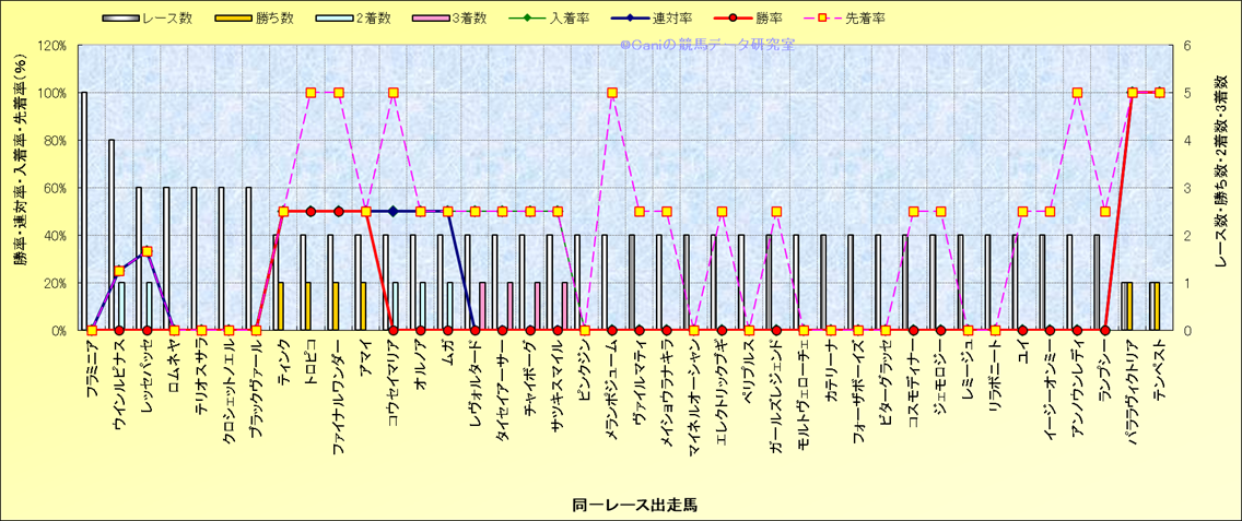 ライバル(相性)解析 同一レースに下記馬が出走した場合の成績とその馬に先着する先着率 |