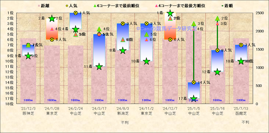近10走 人気−着順-位置取りの推移 |