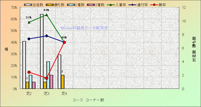 コース、コーナー数別成績(平地) |