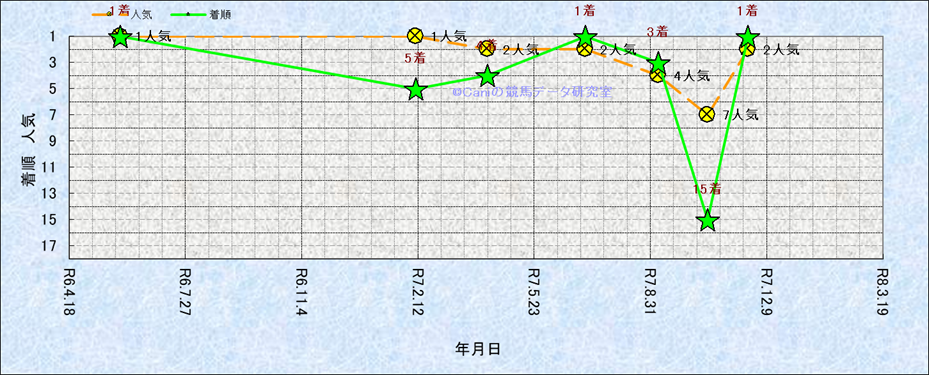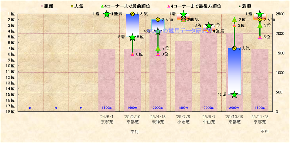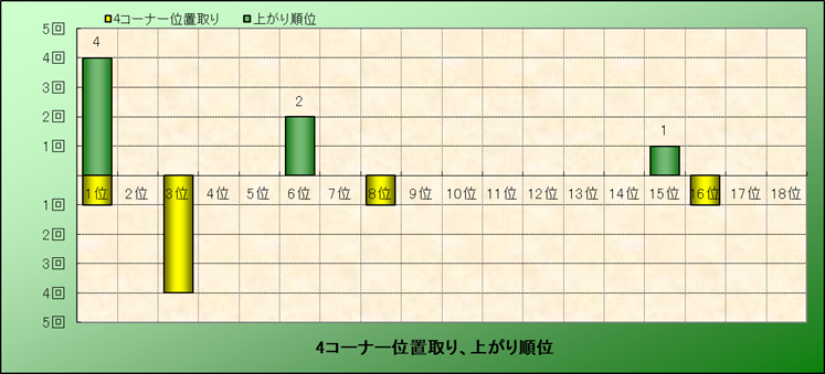 脚質解析 近20レースの4コーナーでの位置取りと上がり順位(頭数補正後) |