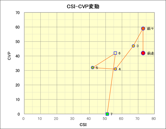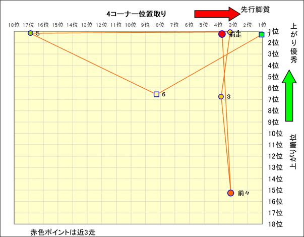 近走における4コーナーでの位置取りと上がり順位(頭数補正後) |