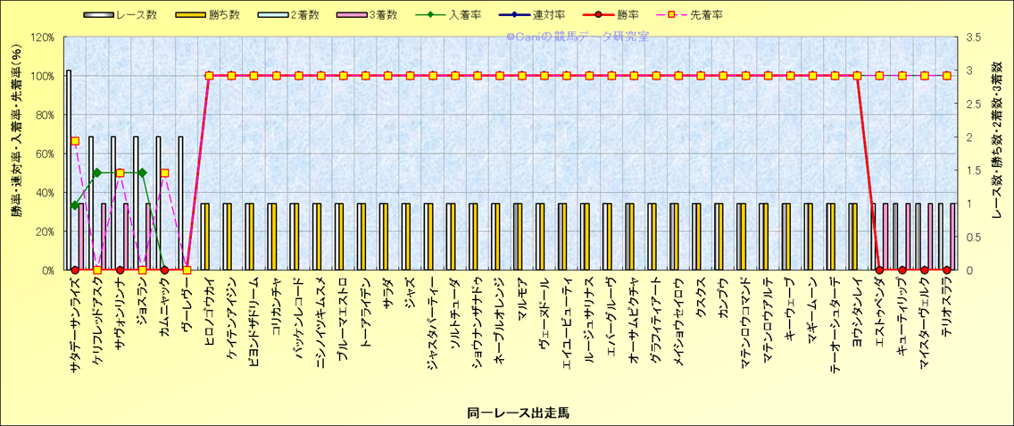 ライバル(相性)解析 同一レースに下記馬が出走した場合の成績とその馬に先着する先着率 |