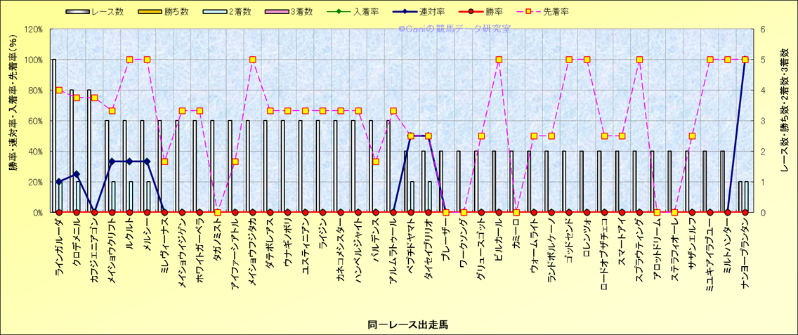 ライバル(相性)解析 同一レースに下記馬が出走した場合の成績とその馬に先着する先着率 |
