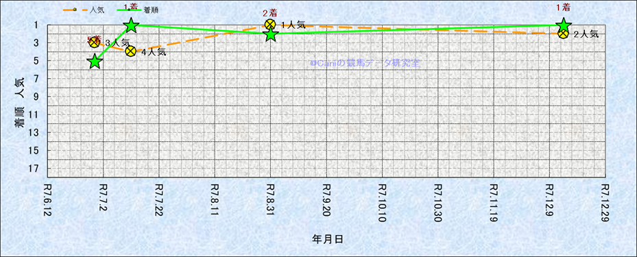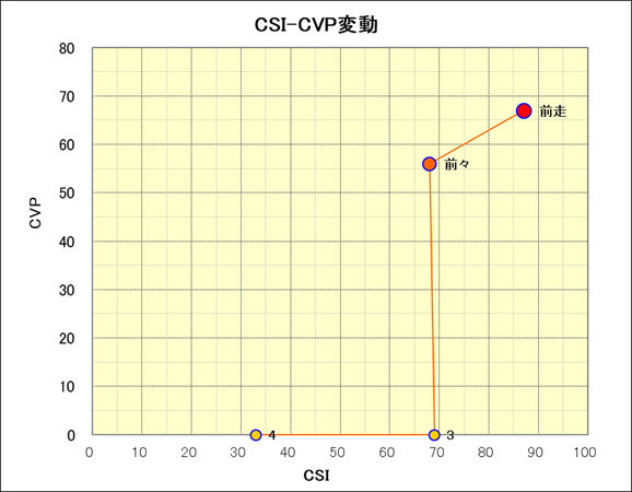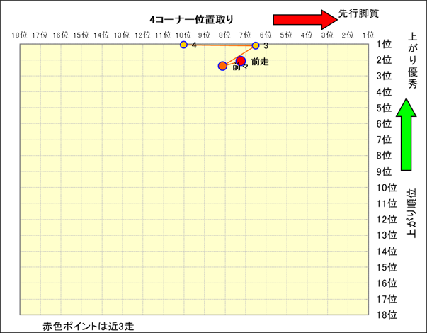 近走における4コーナーでの位置取りと上がり順位(頭数補正後) |