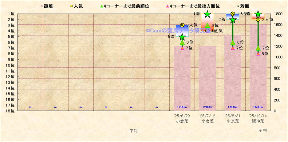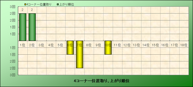 脚質解析 近20レースの4コーナーでの位置取りと上がり順位(頭数補正後) |